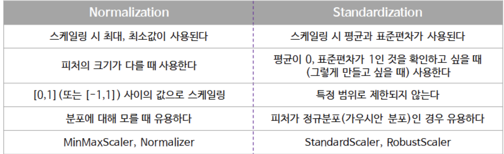 3.4.2. Normalization 정규화: 피처 크기를 동일구간으로 변환 (0~1 사잇값, 음수가 있으면 -1~1)